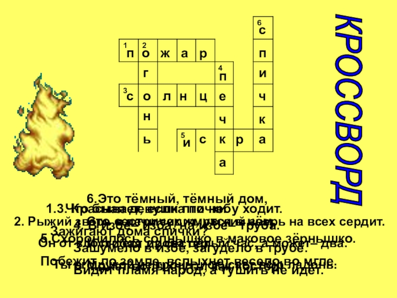 2. Рыжий зверь в печи сидит, рыжий зверь на всех сердит.