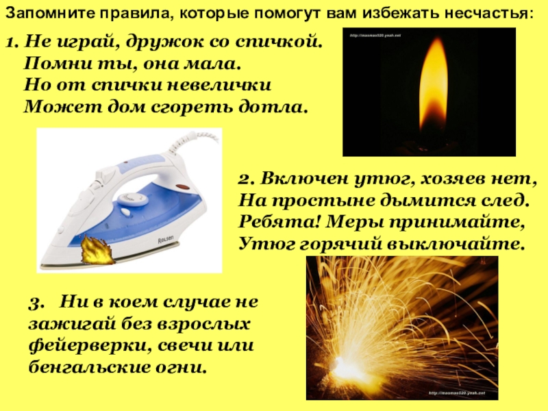 3. Ни в коем случае не зажигай без взрослых фейерверки, свечи или бенгальские огни.