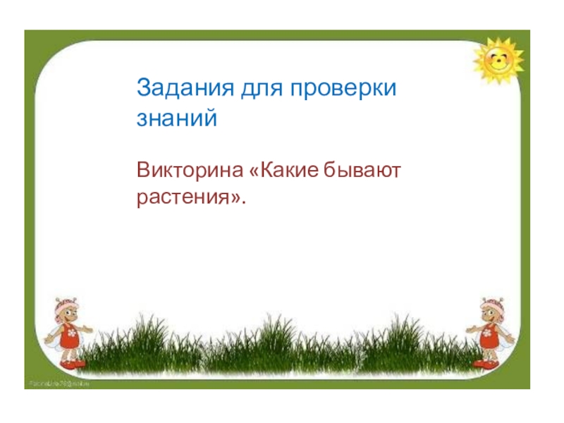 Задания для проверки знанийВикторина «Какие бывают растения».