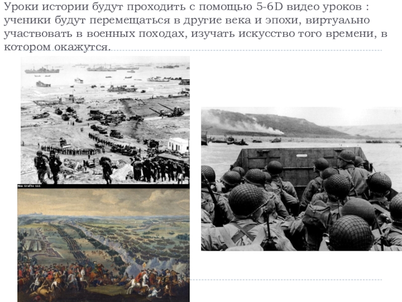 Слайд 5Уроки истории будут проходить с помощью 5-6D видео уроков : ученики