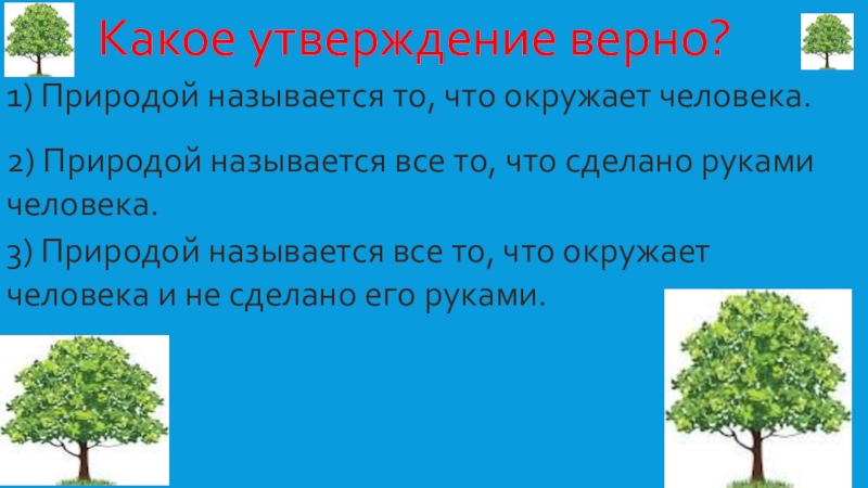 3) Природой называется все то, что окружает человека и не сделано его руками.