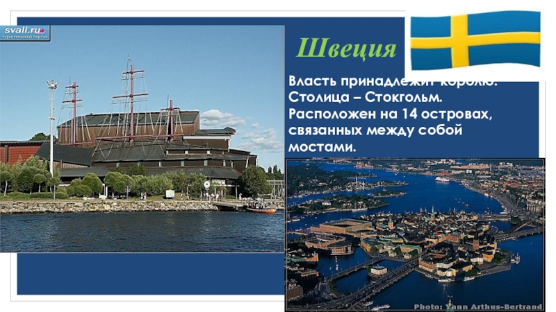 Власть принадлежит королю. Столица – Стокгольм. Расположен на 14 островах, связанных