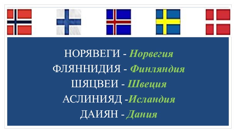 НОРЯВЕГИ - Норвегия ФЛЯННИДИЯ - ФинляндияШЯЦВЕИ - ШвецияАСЛИНИЯД -ИсландияДАИЯН - Дания