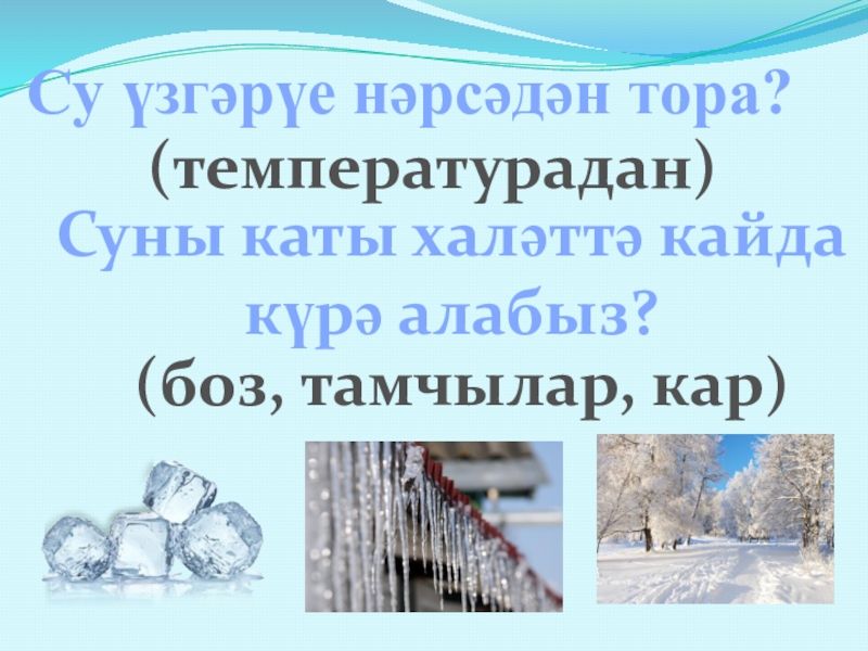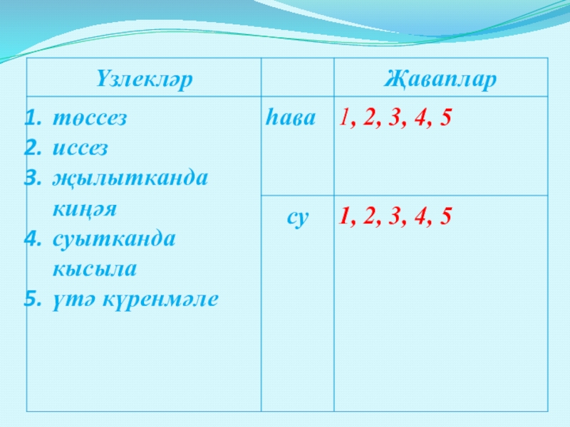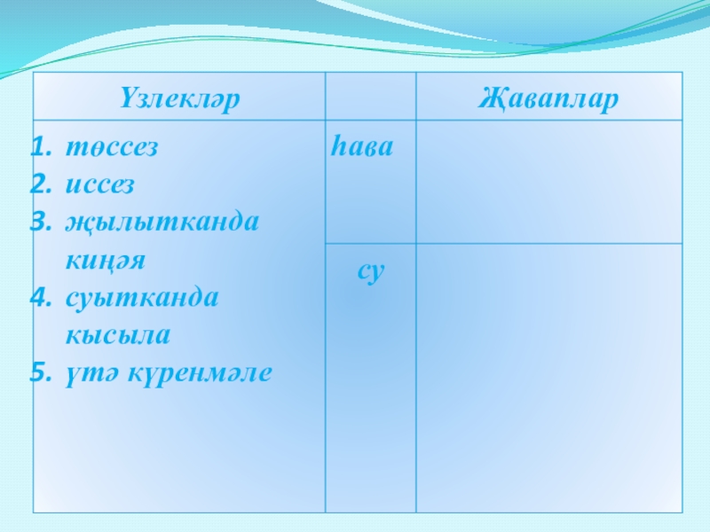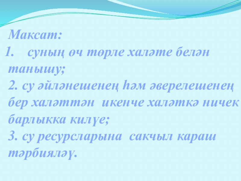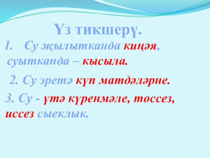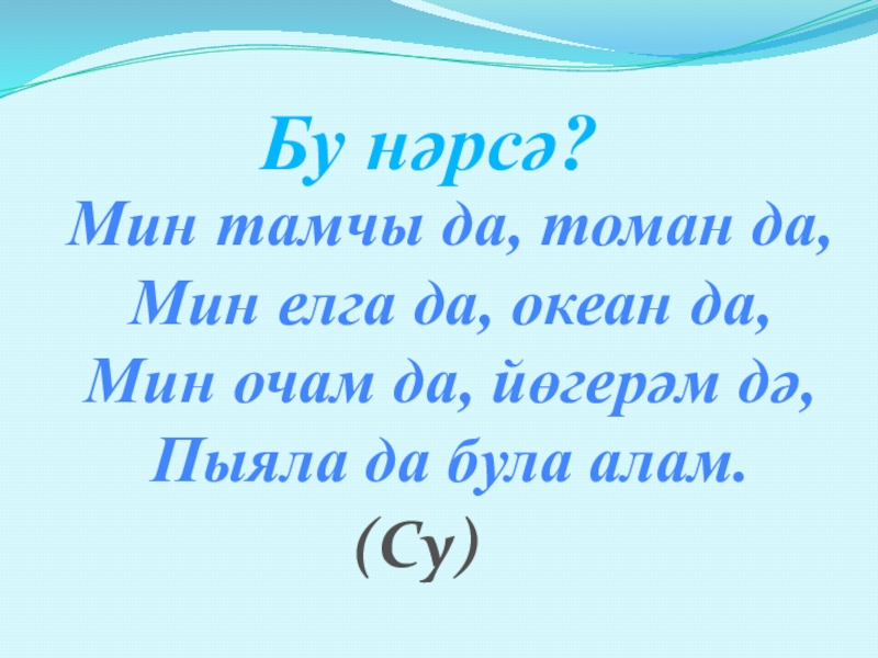 3. Су - үтә күренмәле, төссез, иссез сыеклык.
