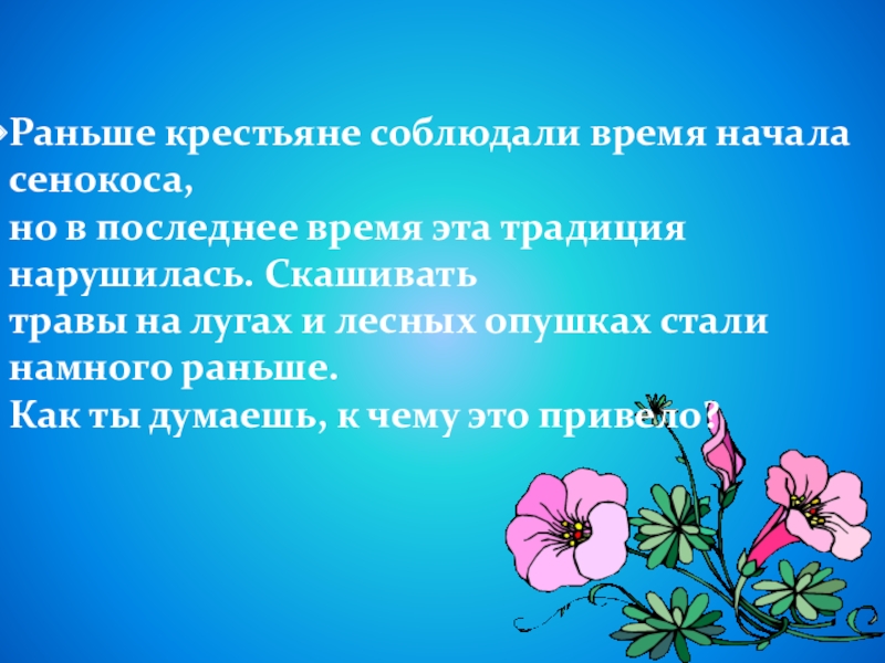 Слайд 17Раньше крестьяне соблюдали время начала сенокоса,