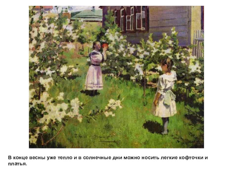 Слайд 16В конце весны уже тепло и в солнечные дни можно носить