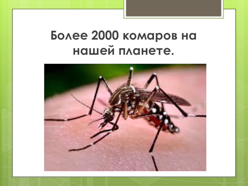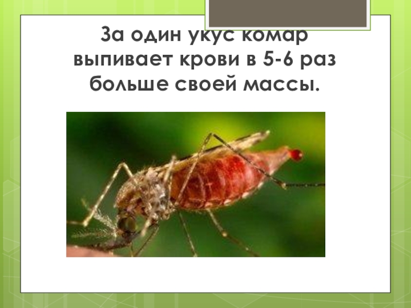 Слайд 7За один укус комар выпивает крови в 5-6 раз больше своей