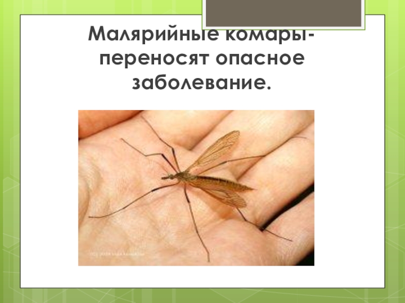 Слайд 11Малярийные комары-переносят опасное заболевание.