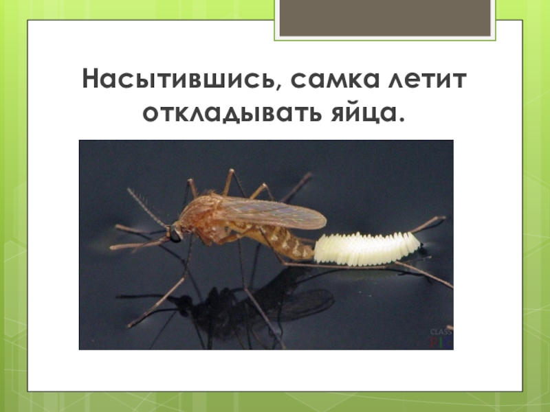 Слайд 8Насытившись, самка летит откладывать яйца.