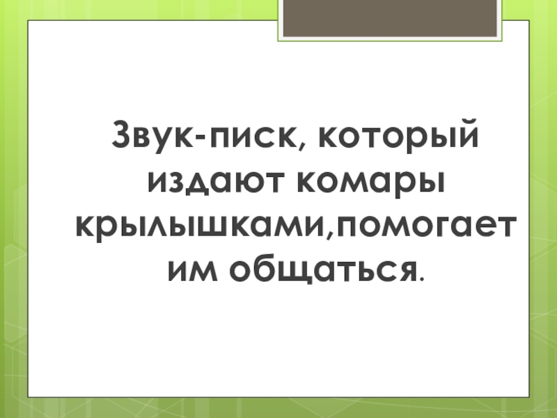 Слайд 10Звук-писк, который издают комары крылышками,помогает им общаться.
