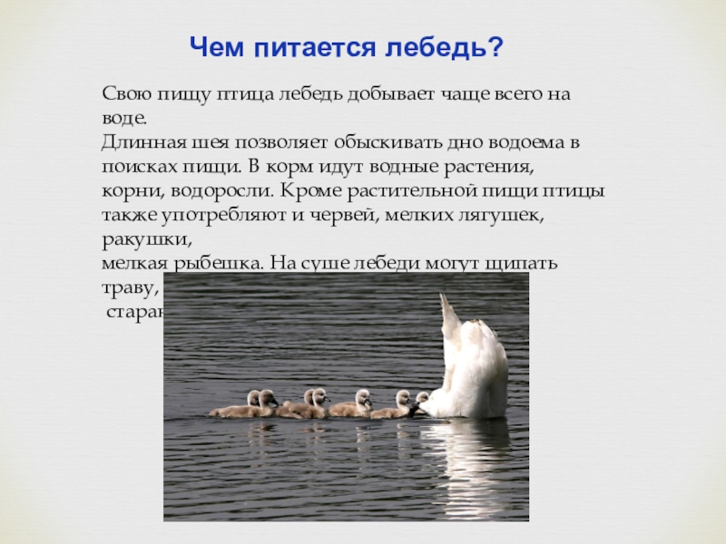 Чем питается лебедь?