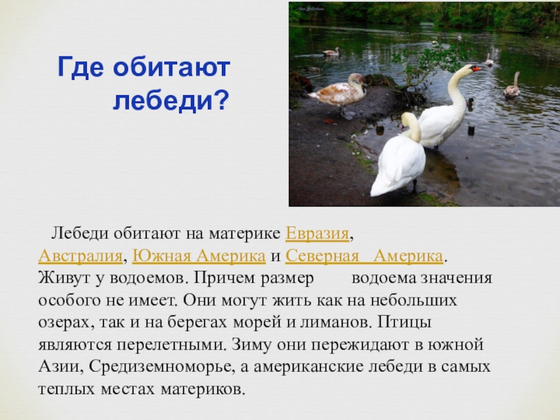 Среда обитания лебедя