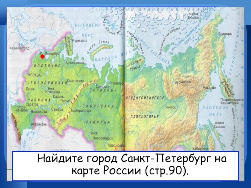 Найдите город Санкт-Петербург на карте России (стр.90).