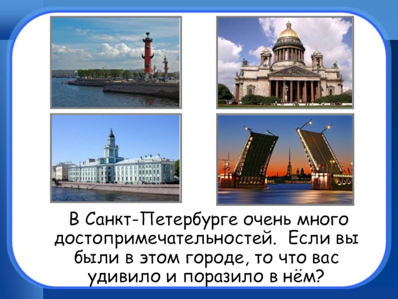 В Санкт-Петербурге очень много достопримечательностей. Если вы были в этом городе,