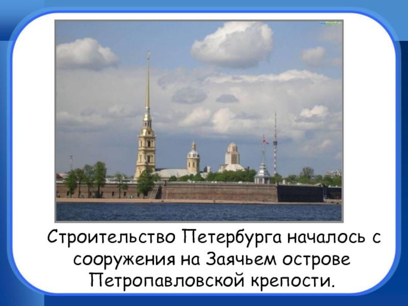 Строительство Петербурга началось с сооружения на Заячьем острове Петропавловской крепости.