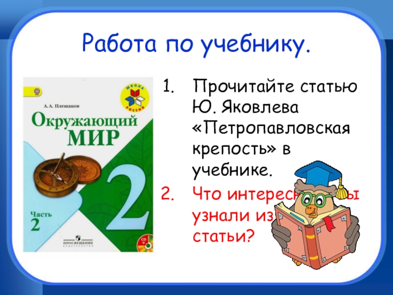 Работа по учебнику.Прочитайте статью Ю. Яковлева «Петропавловская крепость» в учебнике.Что интересного вы узнали из этой статьи?