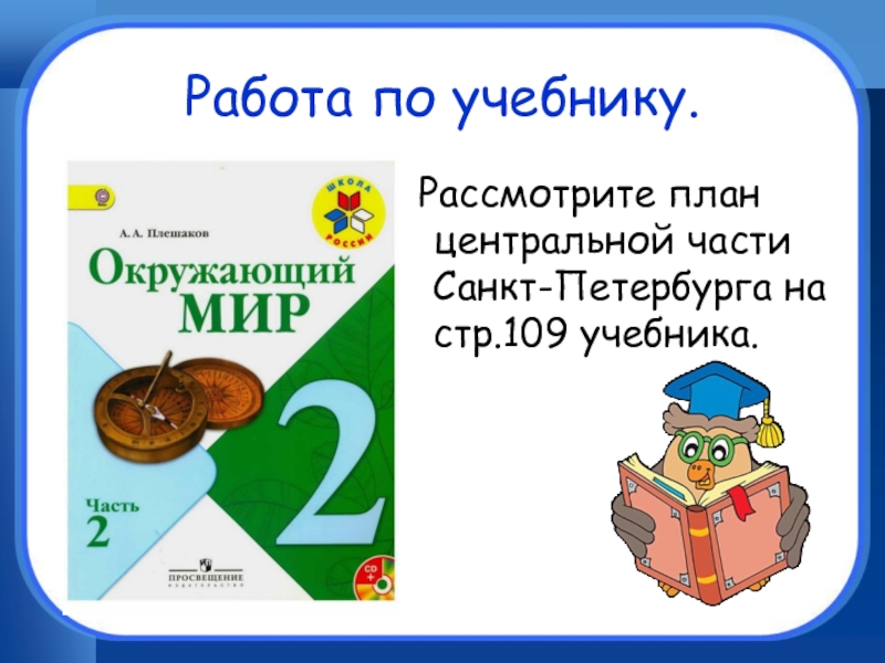 Работа по учебнику.	Рассмотрите план центральной части Санкт-Петербурга на стр.109 учебника.