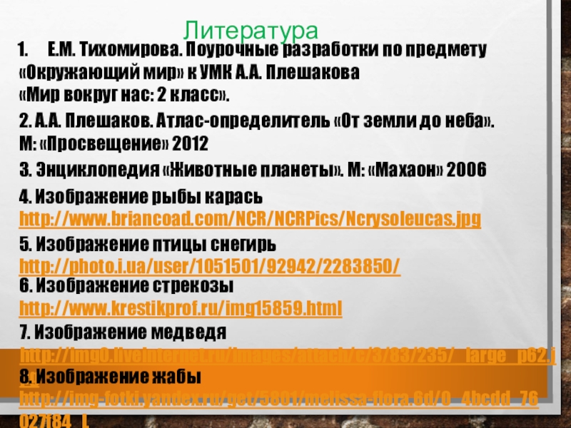 3. Энциклопедия «Животные планеты». М: «Махаон» 2006
