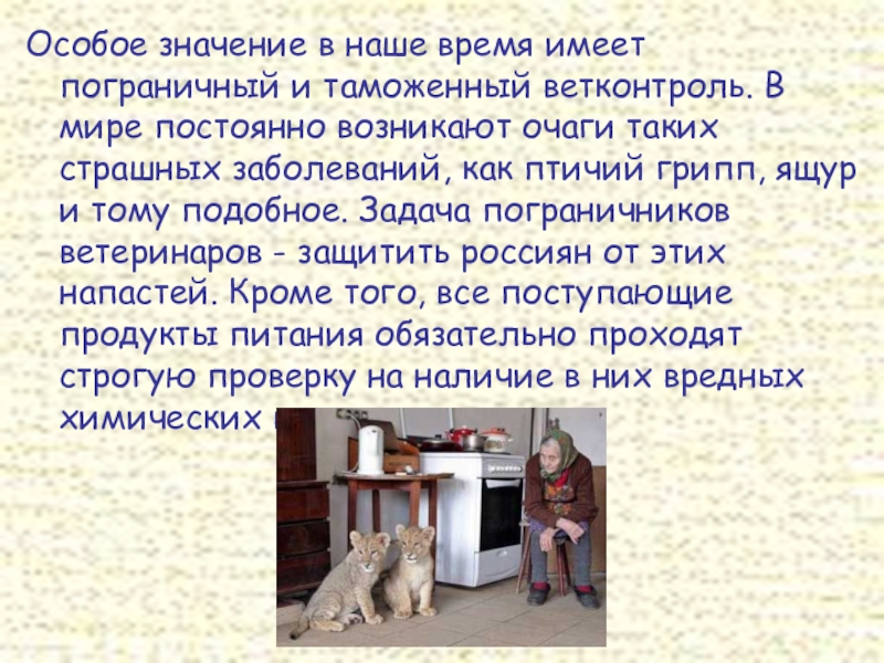 Слайд 20Особое значение в наше время имеет пограничный и таможенный ветконтроль. В