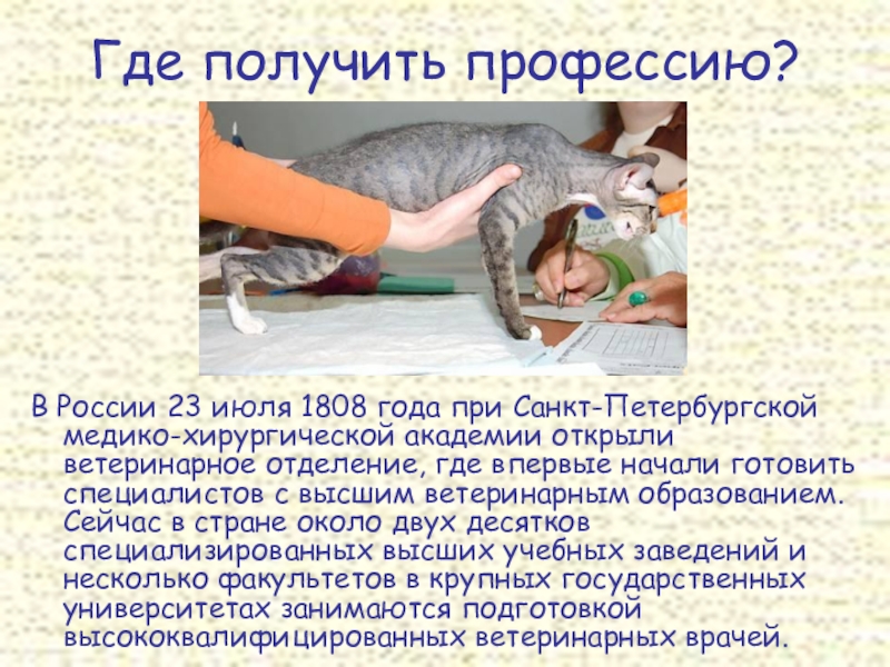 Слайд 14При выборе профессии ветеринара в первую очередь необходимо руководствоваться большой любовью