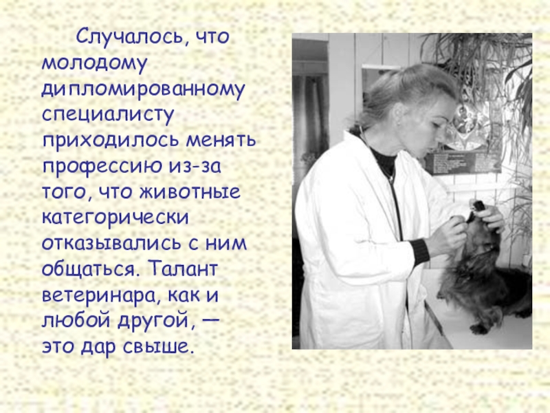 животные категорически отказывались с ним общаться. Талант ветеринара, как и любой другой, — это дар свыше.
