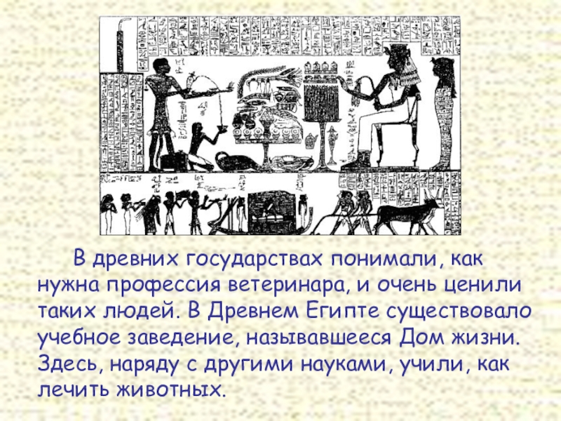 Слайд 8 В древних государствах понимали, как нужна профессия ветеринара, и очень ценили