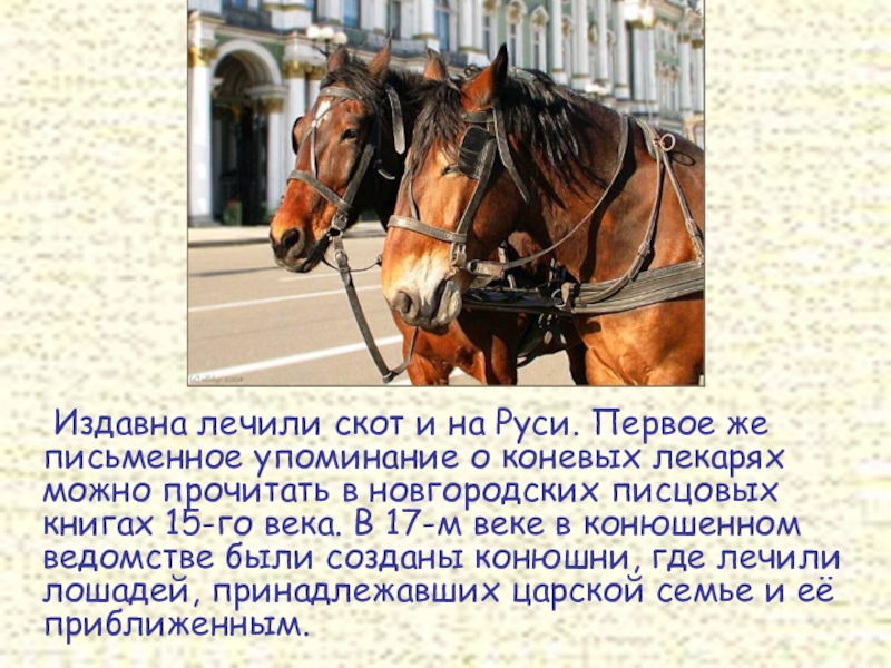 Слайд 11 Издавна лечили скот и на Руси. Первое же письменное упоминание о