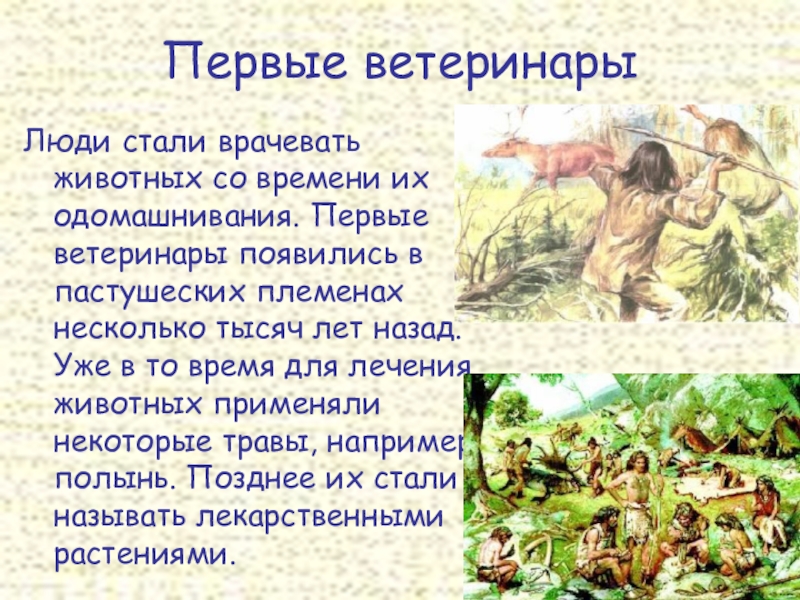 Люди стали врачевать животных со времени их одомашнивания. Первые ветеринары