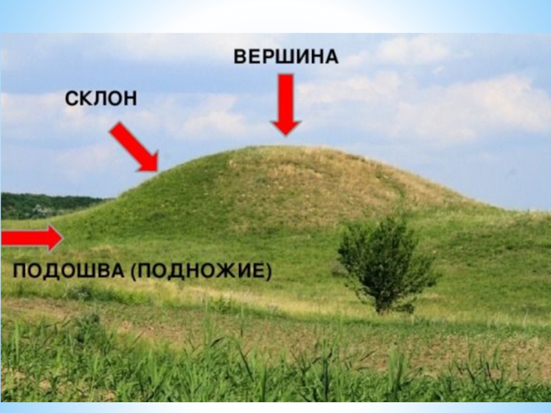 Слайд 6Холмы – это небольшие возвышения на поверхности земли