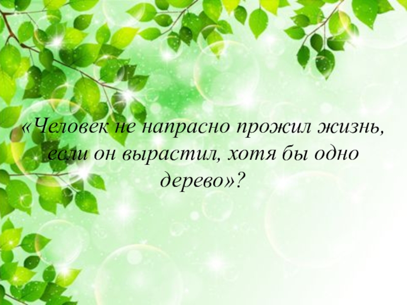 «Человек не напрасно прожил жизнь, если он вырастил, хотя бы одно дерево»?