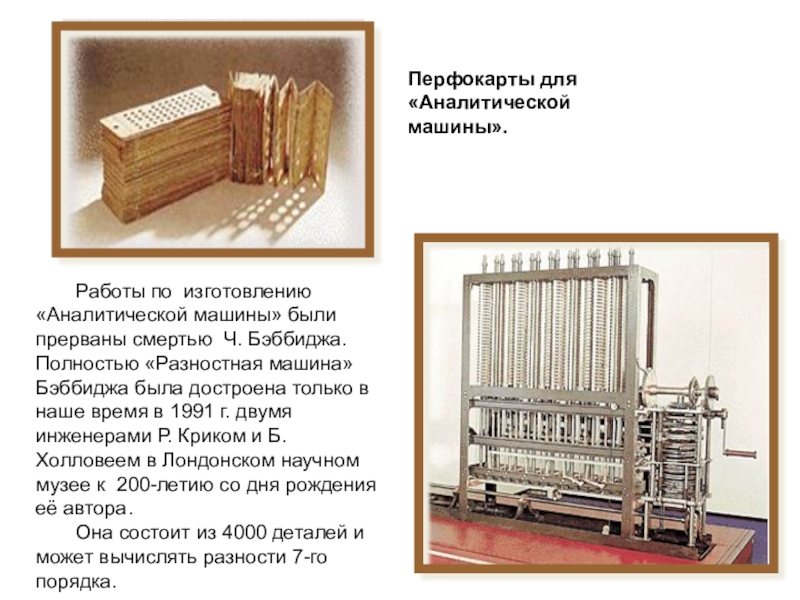 Бэббидж работал над созданием программно управляемой Аналитической машины в период с 1820 по 1856 год.