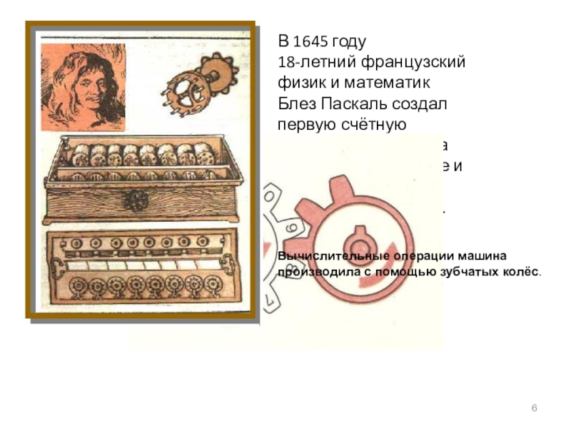 Вычислительные операции машина производила с помощью зубчатых колёс.