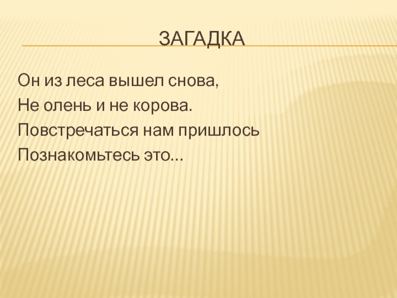 загадкаОн из леса вышел снова,Не олень и не корова.Повстречаться нам пришлосьПознакомьтесь это…