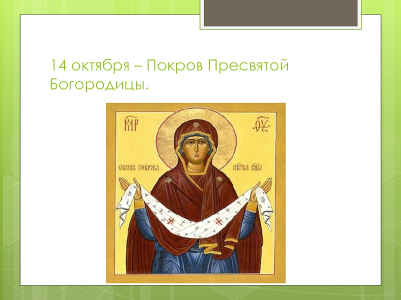 Слайд 1214 октября – Покров Пресвятой Богородицы.