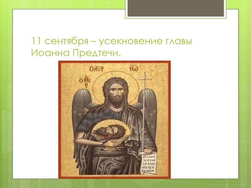 Слайд 311 сентября – усекновение главы Иоанна Предтечи.
