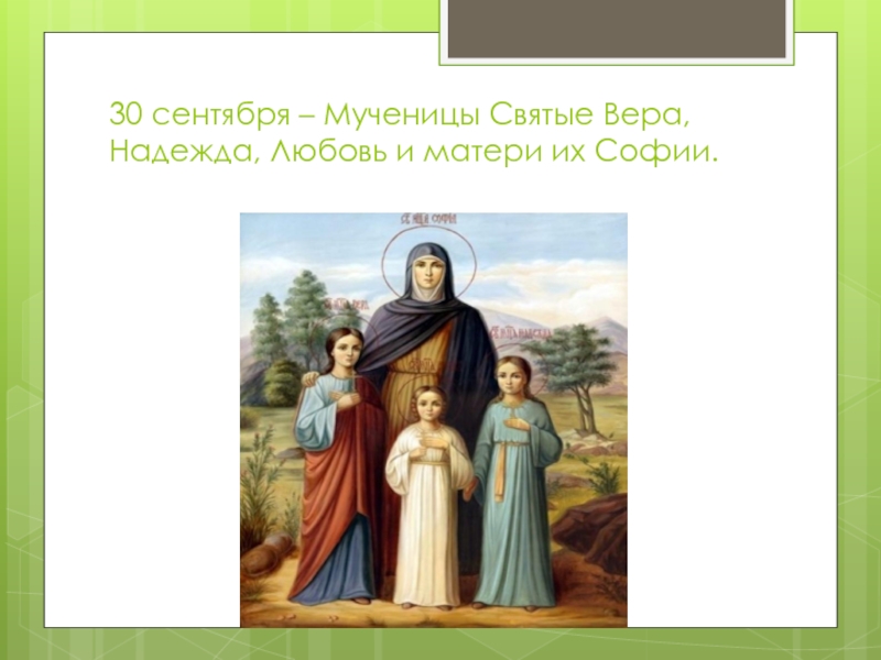Слайд 930 сентября – Мученицы Святые Вера, Надежда, Любовь и матери их