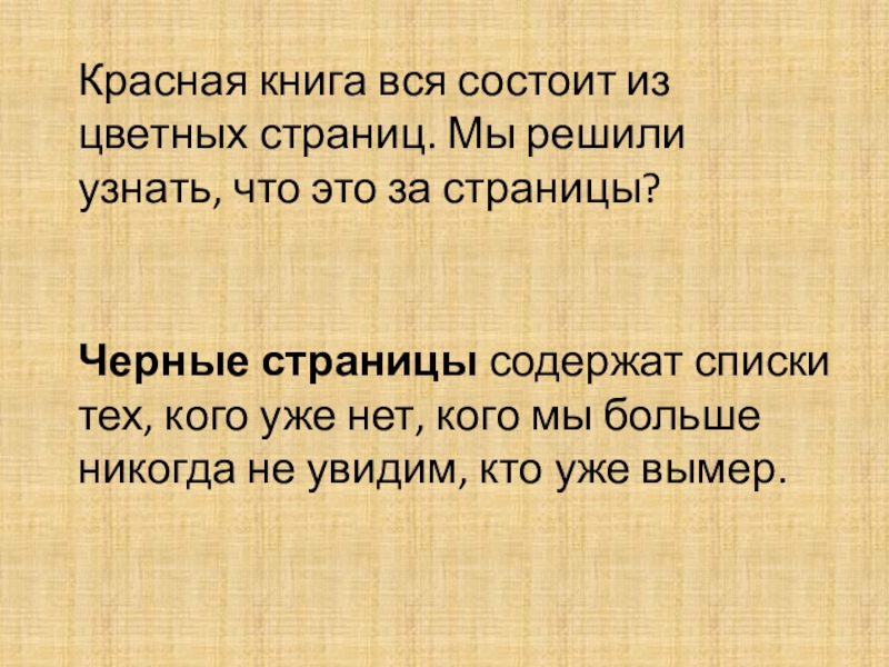 Черные страницы содержат списки тех, кого уже нет, кого мы больше никогда не увидим, кто уже вымер.