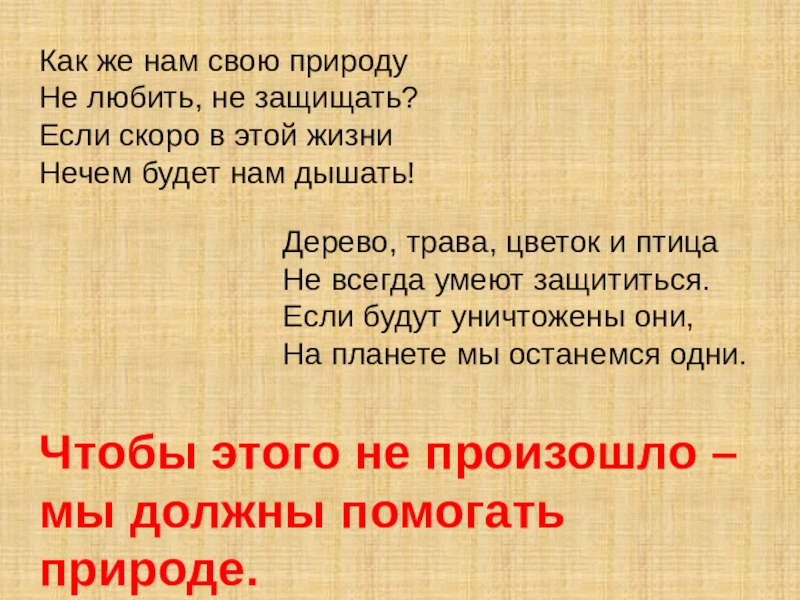 Чтобы этого не произошло – мы должны помогать природе.