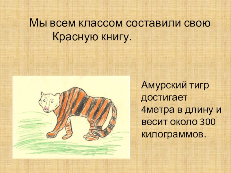 Амурский тигр достигает 4метра в длину и весит около 300 килограммов.