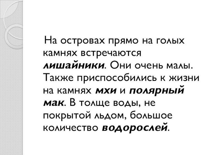 Слайд 3 На островах прямо на голых камнях встречаются лишайники. Они
