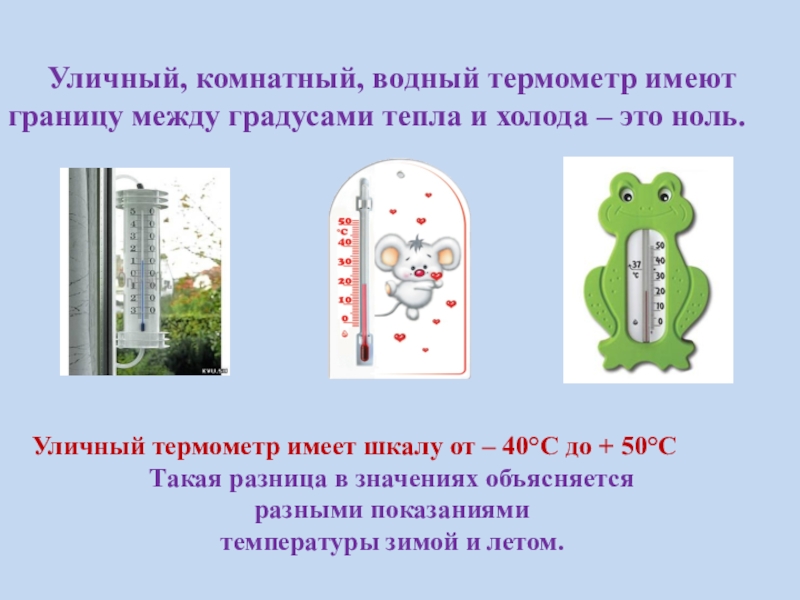 Уличный термометр имеет шкалу от – 40°С до + 50°С
