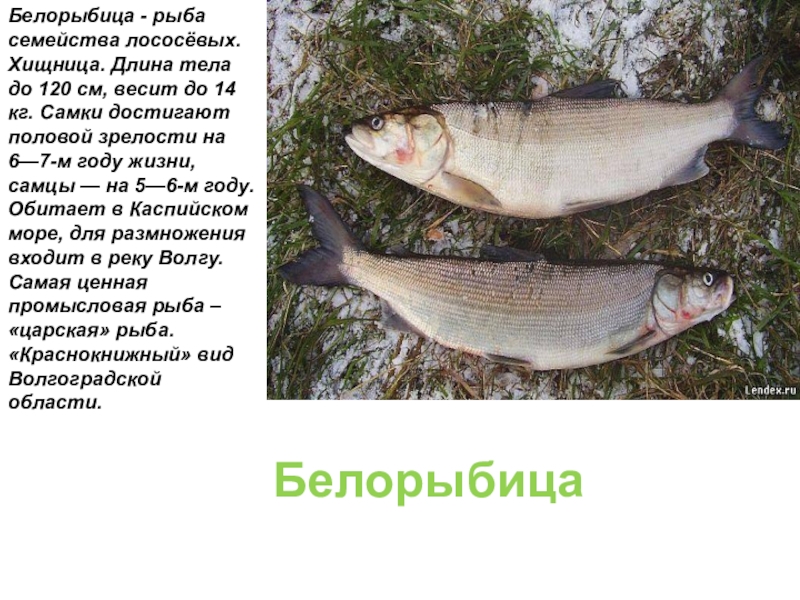 БелорыбицаБелорыбица - рыба семейства лососёвых. Хищница. Длина тела