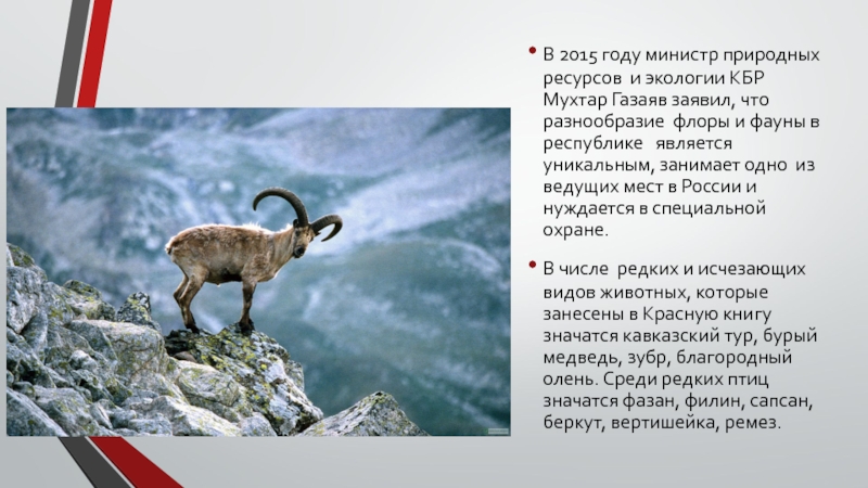 Слайд 8В 2015 году министр природных ресурсов и экологии КБР Мухтар Газаяв