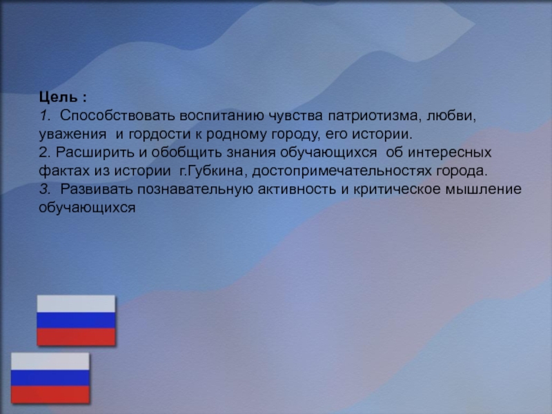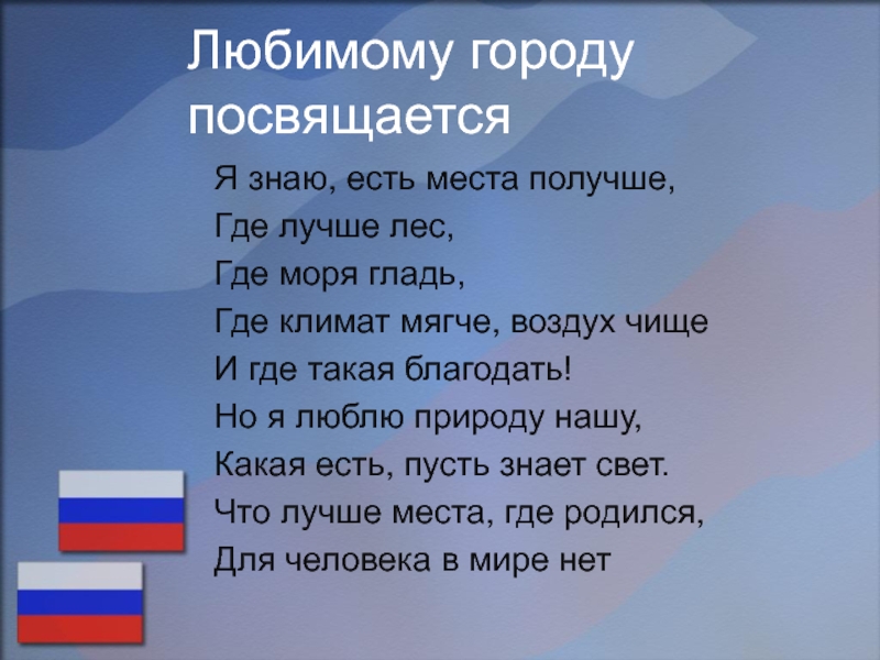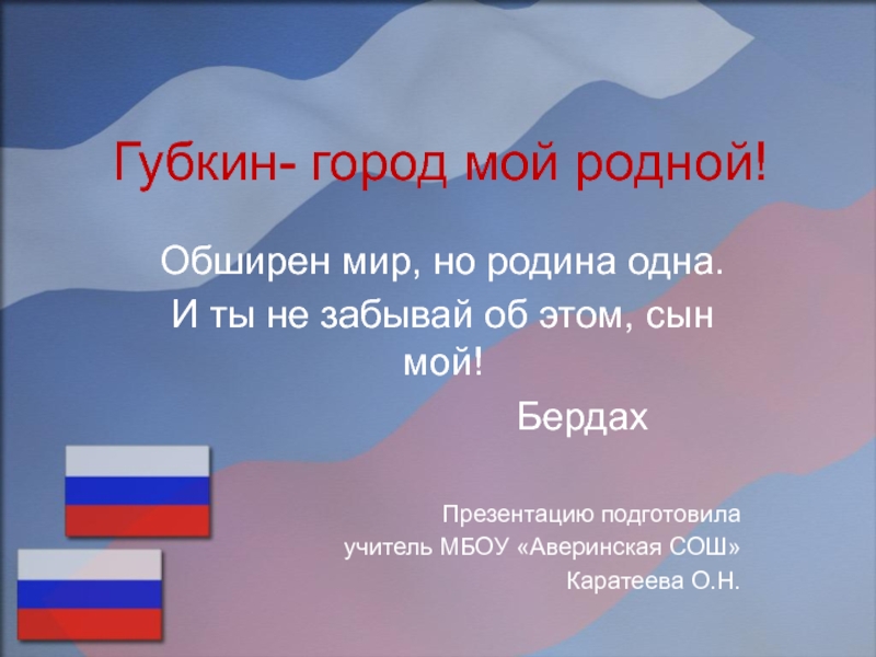 Родина - это наша необъятная страна, в которой леса и поля, моря и реки, города и сёла. Родиной силён, одухотворён, добр и красив человек. У каждого человека существует и своя малая Родина – место, где человек родился, где сделал свои первые шаги, где провёл своё детство, юность…