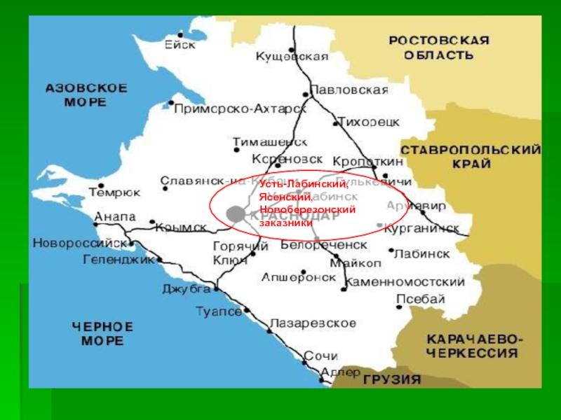 Усть-Лабинский, Ясенский, Новоберезонский заказники