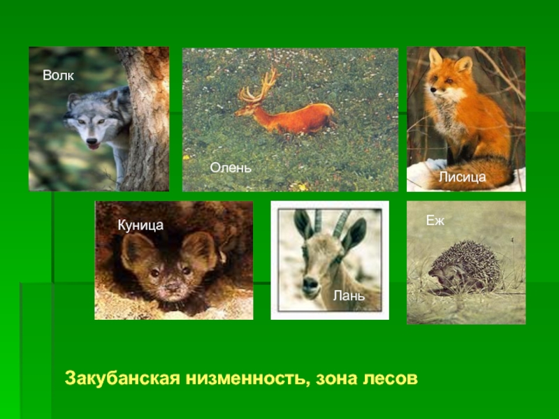 ВолкОленьЕжЛаньКуницаЗакубанская низменность, зона лесовЛисица