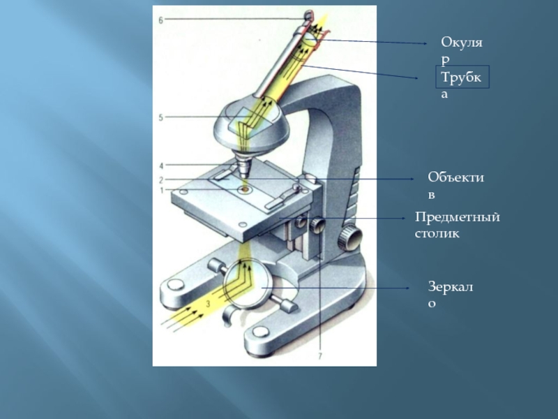 ОкулярТрубкаОбъективПредметный столикЗеркало