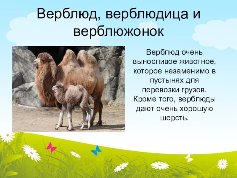 Слайд 6Верблюд, верблюдица и верблюжонок