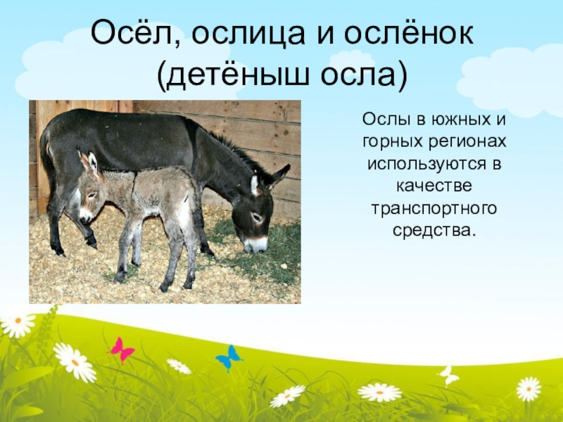 Слайд 5Осёл, ослица и ослёнок (детёныш осла)