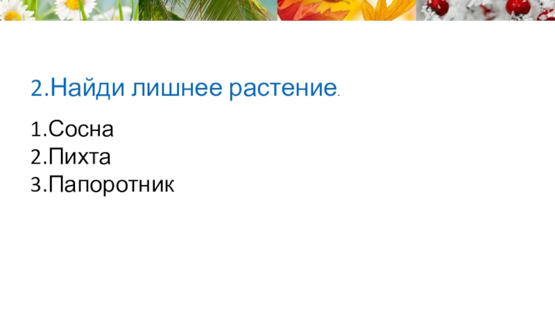 Слайд 412.Найди лишнее растение.